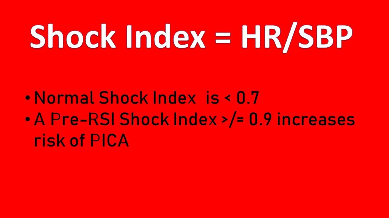 Take heart rate and divide it by systolic blood pressure (HR/SBP) . Anything above 0.7 depicts worsening hemodynamics and above 1.0 is severe shock. Dangerous for intubating so be prepared w/pressors…